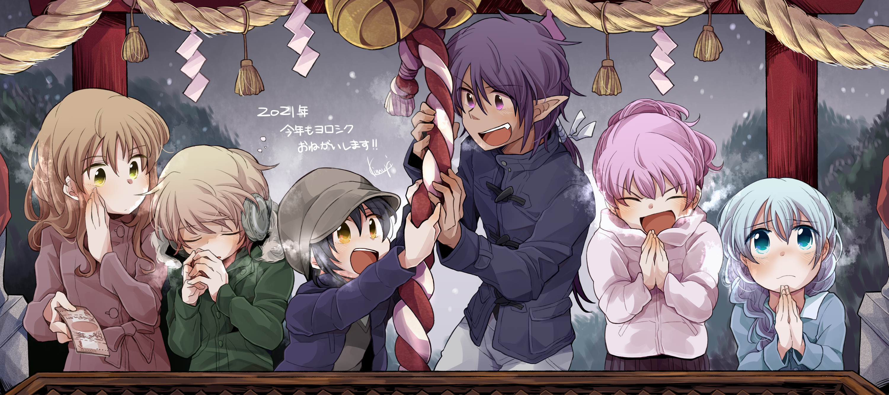 みんなで初詣~ 横長に描いてツイッターのヘッダーにしてました
