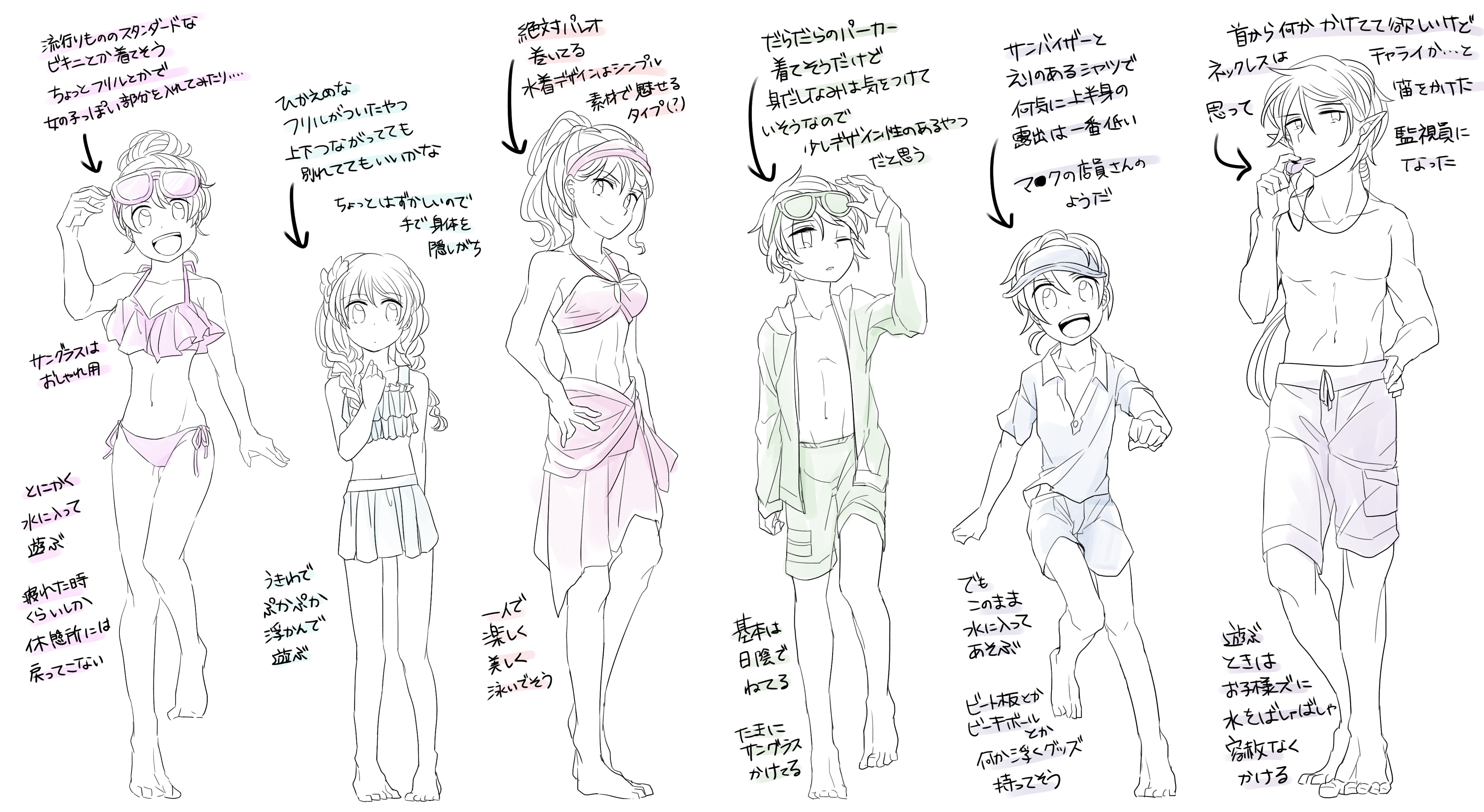 あと楽しくなってしまった各キャラの水着事情↓